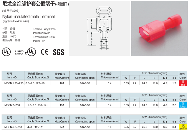 MDFN尼龍全絕緣護套公插端子