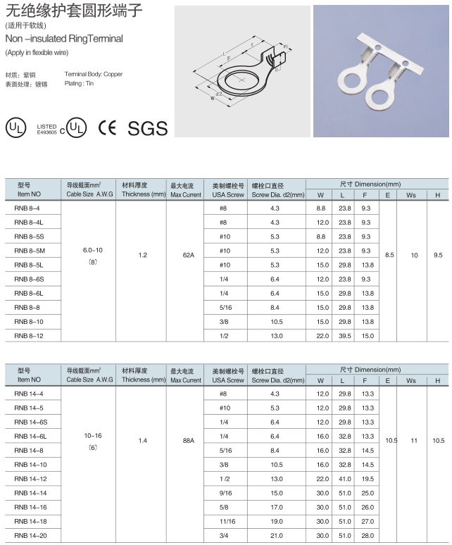 6-16mm2 RNB無絕緣護套圓形端子