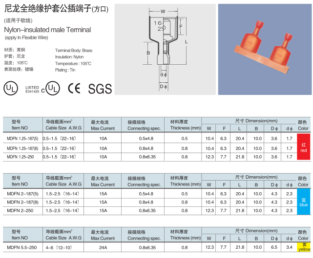 MDFN 方口尼龍絕緣護(hù)套公插端子